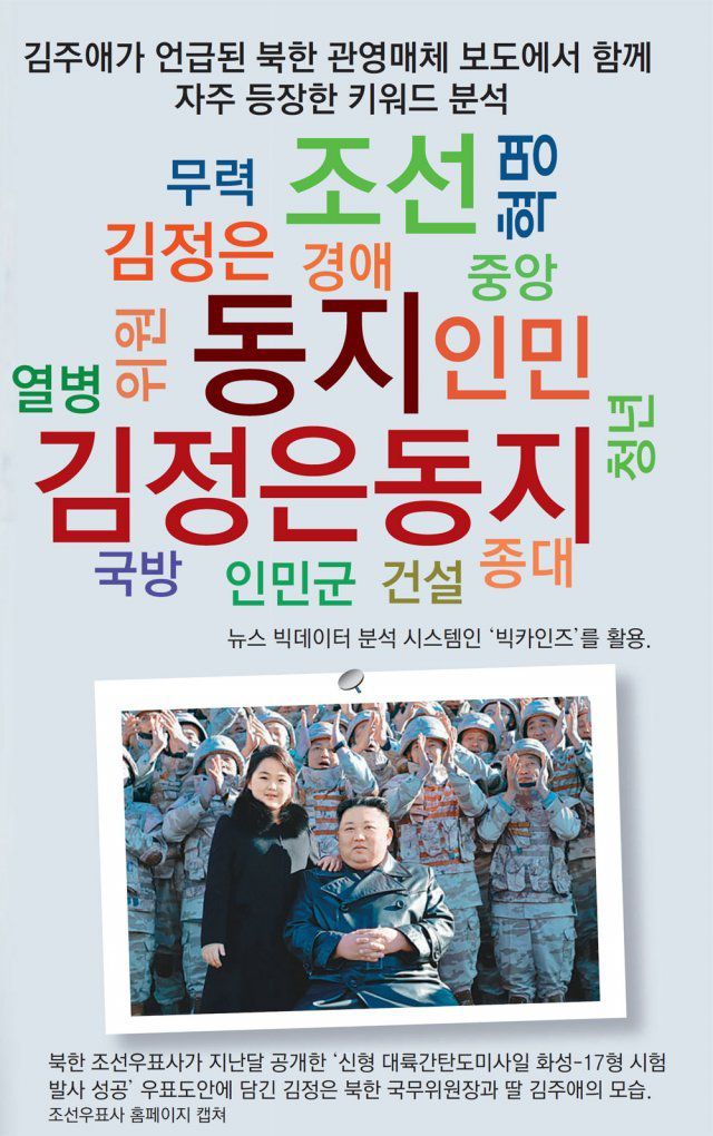 지난해 11월 19일 조선중앙통신 등 북한 관영매체에선 일제히 한 소녀의 사진이 실렸다. 흰색 패딩 점퍼를 입고 빨간 구두를 신은 소녀는 김정은 북한 국무위원장의 손을 잡고 미사일 발사장을 돌아보고 있었다.