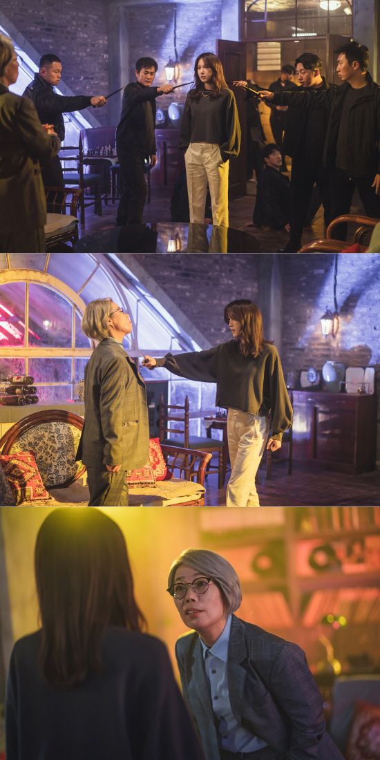 가족에게 위험한 손길을 뻗는 김선덕 소굴에 들어선 홍태라는 킬러들의 섬뜩한 칼에 에워싸여 있다. 일촉즉발 위기에도 눈 하나 깜짝하지 않고 김선덕을 매섭게 노려보는 홍태라의 강단과 비장한 결기가 눈길을 끈다. 김선덕에게 칼을 겨눈 홍태라, 그리고 무언가를 이야기하는 김선덕의 비소는 앞으로의 전개를 궁금하게 한다.