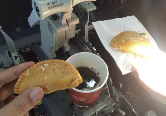 트위터와 외신에 공개된 사진을 보면 이 비행기 조종사들은 항공기 조종석 내부로 추정되는 장소에서 인도 전통 음식인 사모사를 손에 들고 있다. 뚜껑이 열린 테이크아웃 컵에 담긴 커피도 항공기 제어판에 놓여 있다. 해당 컵에는 스페이스젯 로고가 적혀 있다.