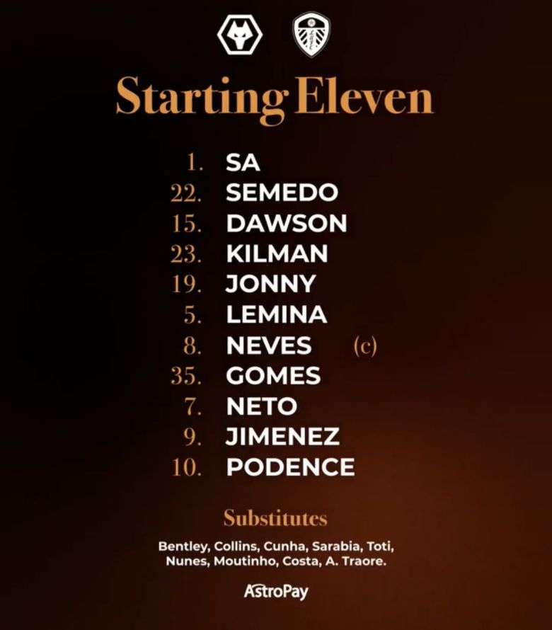 울버햄프턴은 오는 19일(한국시간) 홈구장 몰리뉴 스타디움에서 열리는 리즈 유나이티드와의 2022/23시즌 프리미어리그 28라운드 맞대결을 선발 명단을 발표했다.