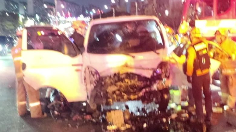 승용차가 보행자와 화물차 잇달아 충격...4명 다쳐