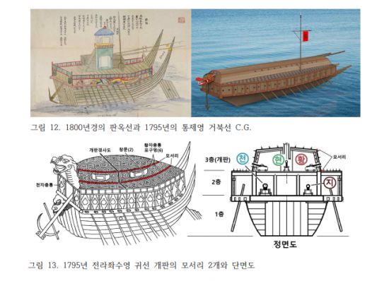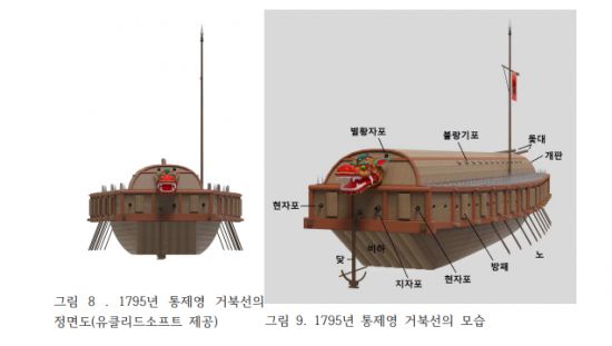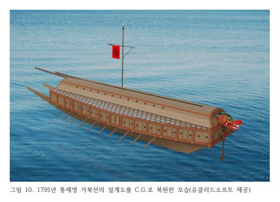 귀선도설에는 1795년 당시 통제영 거북선과 전라좌수영 거북선 등 두 종류가 설명돼 있다. 이 중 규격과 구조가 자세히 드러나 있는 통제영 거북선에 대한 내용을 참고해 컴퓨터 그래픽으로 복원했다.