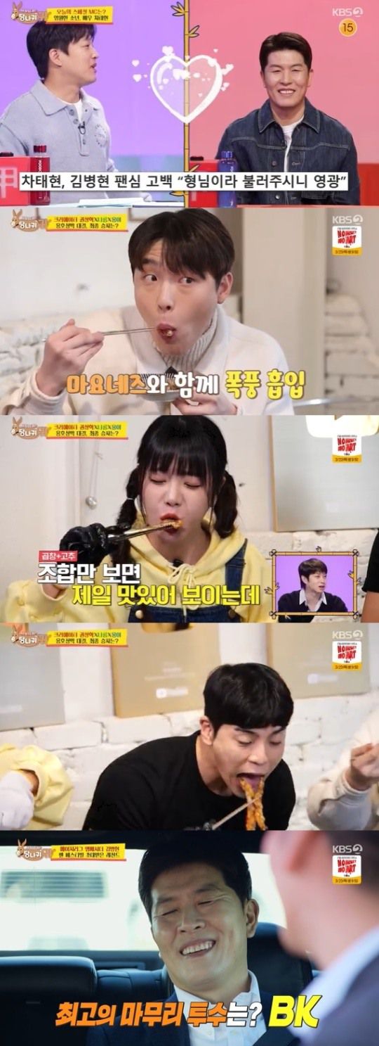그러자 김숙은 차태현에게 "제대로 나왔다"며 "우리가 엄청 무시한다"고 했고 이를 들은 차태현은 "BK를 왜 무시하냐"며 "무시당할 사람이 아니다"고 했다. 왜그렇게 김병현을 좋냐는 질문에는 "딱히 이유가 있어야 하냐"고 했다.