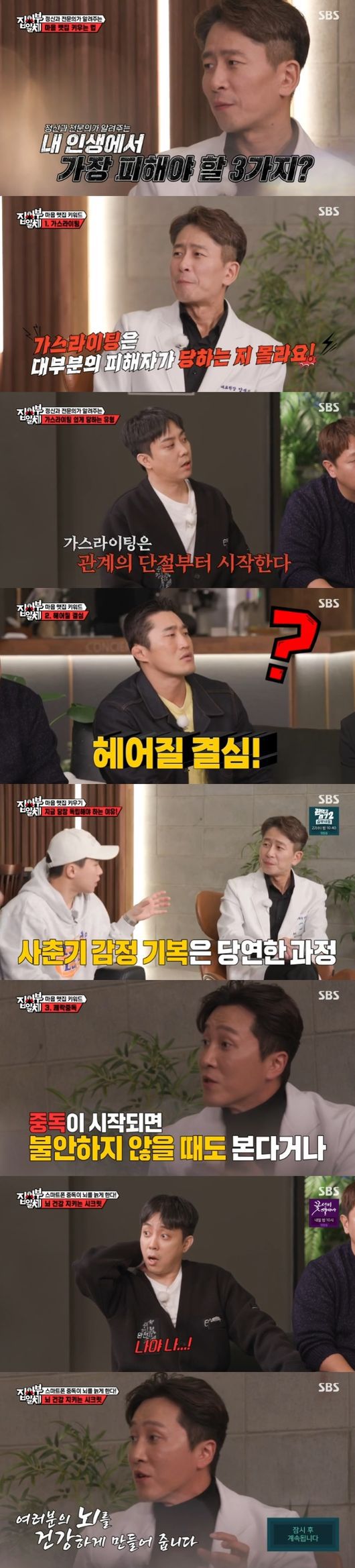 그런가 하면 양재진, 양재웅 박사는 "행복을 위해 가장 조심하고 피해야할 세 가지"를 알려줬다. 그 첫번째는 '가스라이팅'이었다. 양재진 박사는 세뇌와 가스라이팅의 차이에 대해 "세뇌와 가스라이팅의 가장 큰 차이는 당하는 사람이 내가 당하는줄 모른다. 세뇌는 당하는 사람도 자신이 잡혀있고 세뇌당하는걸 안다. 가스라이팅은 훨씬 교묘하고 고차원적이다. 당하는사람이 당하는걸 인지 못한다. 나중에 무슨일이 생긴 다음에 '그때서야 보니까 내가 당했구나'가 되는거다"라고 설명했다.