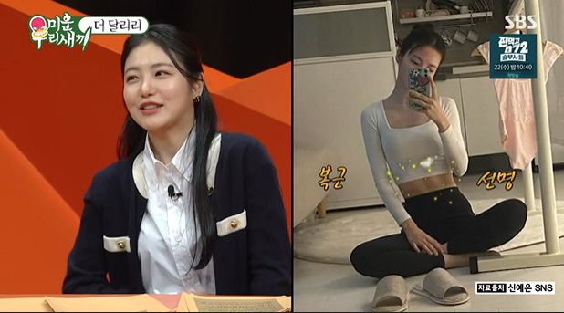 또 운동을 워낙 좋아한다는 신예은은 "러닝을 7키로탄다"고 했다. 또 식스팩 생길 정도로 운동한다고. 복근도 선명한 사진을 공개했다. 신예은은 "사격선수 역할할 때 더 많이해 액션스쿨도 다녔다"고 답했다. 이에 MC들은 모벤져스에게 "운동 잘하는 며느리 어떤가" 묻자 허경환 모친은 "우리 아들이 좋아할 것 같다 자기가 좋아한다"며 답했다. /ssu08185@osen.co.kr