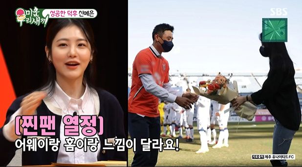 이어 최근 제주도 여행 모니터를 보던 중 신예은도 제주도를 다녀왔는지 묻자 신예은은 "K리그 좋아해서 축구 경기보러 갔다"며 제주도 소속 구자철 선수 팬이라고 했다. 중1때부터 오래된 팬이라는 것. 신예은은 "우연히 보고 반했다. 시합보러 제주도까지 갈 정도. 원래 분데스리가 독일에 있어서 항상 집에서 컴퓨터로 봤다"며 "지금 (제주도는) 행복하다 서울경기, 제주도도 간다 ,어웨이랑 홈이랑 느낌이 다르다"며 찐팬 바이브를 보였다.