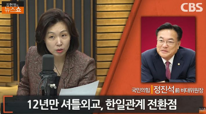 ◆ 정진석> 한일 관계가 장기간 경색되고 냉각 상태로 있지 않았습니까? 어쨌든 이 얼음장처럼 차가웠던 한일 관계, 이거를 다시 과거 좋았던 시절로 되돌리려는 첫 걸음이었다. 저는 그렇게 보고 싶고요. 궤도를 이탈했던 한일 관계를 다시 정상화, 비정상의 정상화를 시도하는 첫 걸음이었다라고 저는 총평하고 싶네요.