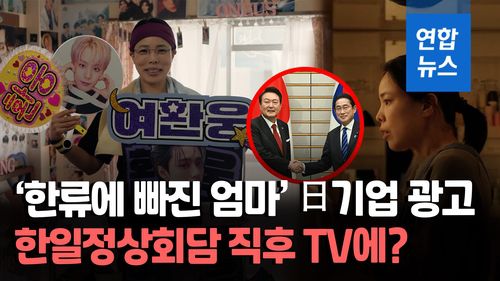 (서울=연합뉴스) 윤석열 대통령 방문 이후 일본에서 한국 아이돌 그룹 '원어스'에 빠진 엄마를 주제로 한 TV 광고가 시작했습니다. 일본 최대 도시가스 업체인 도쿄가스가 지난 18일부터 '엄마의 아이돌 응원'이라는 제목의 광고를 내보내고 있는 건데요, 광고는 엄마 역할인 배우 안도 다마에가 원어스 멤버 환웅을 좋아하면서 생기는 변화를 다루고 있습니다. 택시 기사로 일하며 10대 딸을 키우는 그녀는 원어스의 음악을 듣고 잡지를 읽으며, 도쿄 코리아타운 신오쿠보에서 혼자 한국식 디저트를 사 먹습니다. 또 한국어 학원에서 한국말을 배웁니다. 택시에 탄 한국 손님에겐 "도와드릴까요. 맡겨만 주세요"라고 자신 있게 한국말로 대화합니다. 서울에서 열리는 원어스 콘서트 추첨에 당첨돼 뛸 듯이 기뻐하지만 마침 택시에 탄 기침을 하는 손님에게 감염돼 한국행이 좌절됩니다. 아이돌에 빠진 엄마를 처음에는 못마땅하게 여기던 10대 딸은 앓아누운 엄마에게 한국 삼계탕을 끓여주고 엄마는 다시 힘을 냅니다. 한국과 관련 없는 일본 내수 대기업이 한류를 주제로 이미지 광고를 제작한 것은 이례적인데요. 한일 정상회담 직후 이런 광고가 TV 전파를 탔다는 점도 주목됩니다. 다만, 도시가스업체의 광고답게 중간중간 요리를 하기 위해 가스레인지를 클로즈업한 장면들도 등장했습니다. 도쿄가스는 이 광고에 대해 "좋아하는 것에 열중하는 것을 통해 삶이 풍요로워지는 모습을 보여줌으로써 보통 사람들을 응원하는 도쿄가스의 자세를 보여준다"고 소개했습니다. 영상으로 보시죠. <제작 : 김해연·이금주> <영상 : 연합뉴스TV·도쿄가스 유튜브·도쿄가스 트위터·원어스 유튜브>