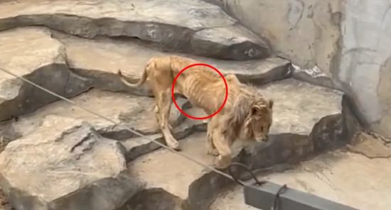 중국의 한 동물원에서 뼈만 앙상하게 남은 사자의 모습이 공개돼 누리꾼들의 공분을 사고 있다.