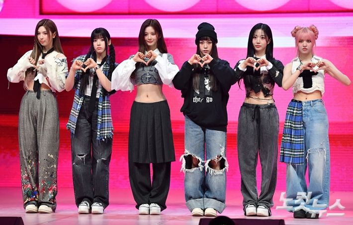 엔믹스가 타이틀곡 '러브 미 라이크 디스' 무대를 선보이고 있다. 류영주 기자 |