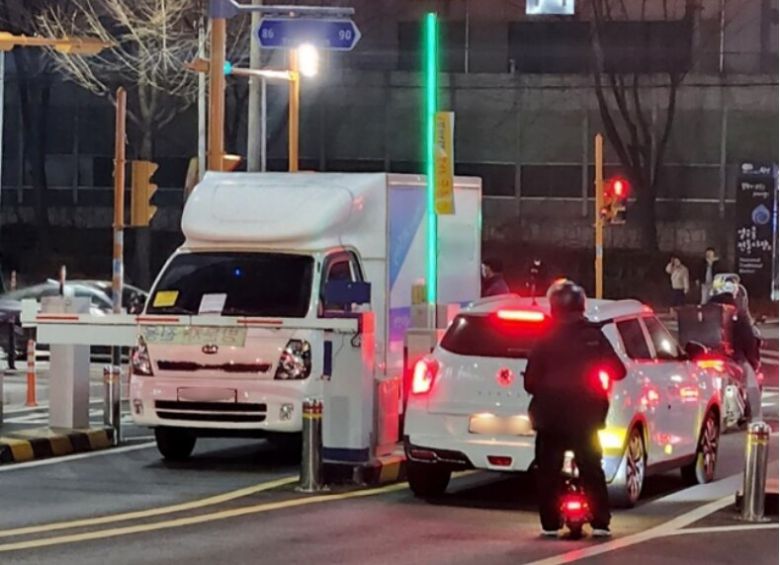 탑차 주차 금지하자… 1t 탑차로 아파트 입구 막은 차주
