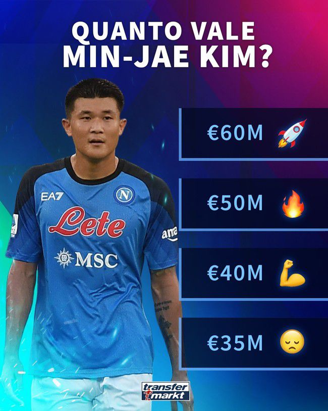 만약 5000만 유로(약 700억 원) 이상으로 발표된다면 김민재는 말 그대로 월클 몸값이 된다. 현재 5000만 유로로 평가되는 센터백으로는 가브리엘 마갈량이스, 리산드로 마르티네스, 파우 토레스 등이 있다. 리버풀의 세계적인 센터백인 버질 반 다이크도 5000만 유로가 되지 못한다.