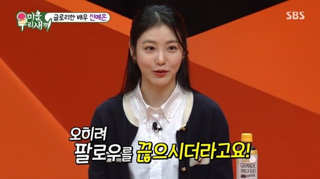 이날 방송에서 신예은은 악역 연기로 인해 팔로워 수가 줄어들었다고 밝혔다. MC가 "성인 캐릭터를 연기한 임지연이 DM으로 고데기 사진을 엄청나게 받는다고 하는데 어떤가?"라는 묻자 신예은은 "내 경우 '더 글로리' 오픈 전에 회사에서 팔로워 수가 올라갈 거라고 했다. 그래서 조금 기대하고 있었는데 '웃는 모습 보고 싶지 않다', '얼굴도 보고 싶지 않다'는 댓글과 함께 오히려 팔로우를 끊더라"고 털어놨다. 이에 MC 신동엽은 "그게 진짜 성공한 것"이라며 신예은의 연기를 칭찬했다.