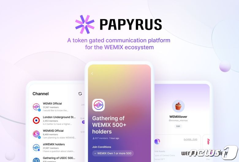 (서울=뉴스1) 김지현 기자 = 가상자산(암호화폐) 위믹스를 만든 위메이드(112040)가 세계 최초 토큰 게이팅 메신저 '파피루스(Papyrus)'를 프리 오픈했다고 21일 밝혔다.