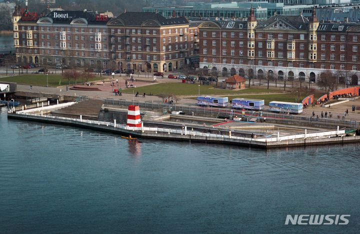 [서울=뉴시스] 조현아 기자 = 덴마크 코펜하겐 중심부의 항구 지역 브리게 섬에는 바다 수영을 즐길 수 있는 부유식 형태의 '해수풀장(하버배스)'이 설치돼있다. 바다나 강, 호수 등 수상에 설치되는 부유식 수영장은 주변 자연 경관을 즐기면서 수영이나 물놀이를 즐길 수 있는 게 특징이다.