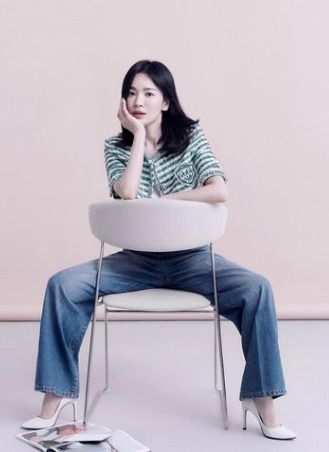 송혜교는 화사한 원피스부터 청바지와 티셔츠, 슬랙스 등 다양한 의상을 입고 포즈를 취하고 있다.