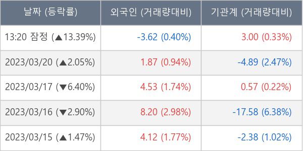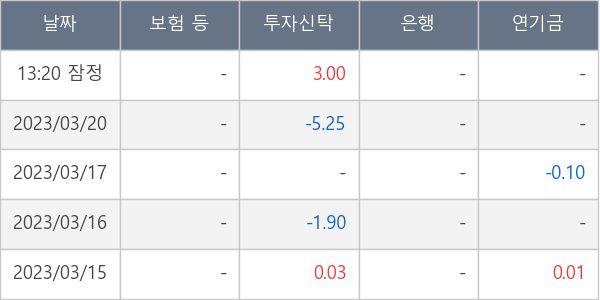 [표] 주요 기관별 순매매량 (단위 만주)