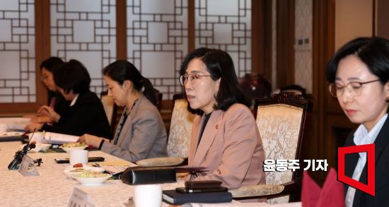 김현숙 여성가족부 장관이 21일 서울 종로구 정부서울청사에서 열린 민간기업 여성 임원들과의 간담회에 참석, 인사말을 하고 있다. 이날 간담회에는 박정림 KB증권 대표, 김소영 CJ제일제당 부사장, 김혜주 롯데멤버스 대표, 김은정 SK SUPEX추구협의회 부사장, 박은영 대상 총괄중역, 김수진 세아베스틸지주 이사, 이영진 11번가 마케팅담당이 참석했다. 사진=윤동주 기자 doso7@