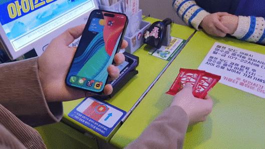 초콜릿 2개를 고른 뒤 애플페이로 결제하겠다고 했고 아이폰 우측 버튼 두 번을 눌러 결제를 마쳤습니다.