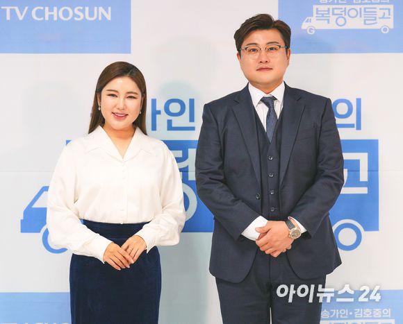 가수 송가인과 김호중이 TV CHOSUN '복덩이들고(GO)' 기자간담회에 참석하고 있다. [사진=TV CHOSUN] |