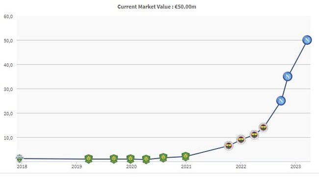 나폴리에서 보여준 압도적인 활약은 관심 폭증으로 이어졌다. 맨체스터 유나이티드, 리버풀, 토트넘 훗스퍼 등 잉글리시 프리미어리그(EPL) 팀들과 계속 연결됐고 파리 생제르맹(PSG)과 같은 EPL 외 빅클럽들과도 이적설이 났다. 그만큼 김민재에 대한 관심은 뜨겁다. 그럴수록 가치는 올라갔는데 결국 5,000만 유로까지 됐다.