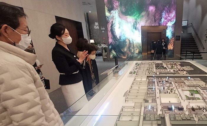 ‘VL르웨스트’ 견본주택 방문객들이 커뮤니티 시설에 대한 설명을 듣고 있다. |