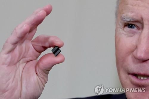 반도체칩 들고 있는 바이든 대통령[로이터 연합뉴스 자료사진. 재판매 및 DB 금지]