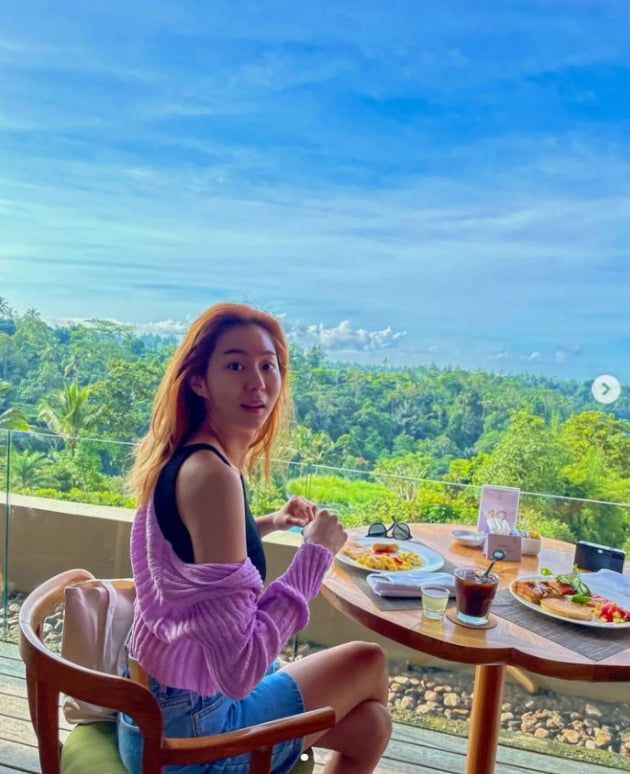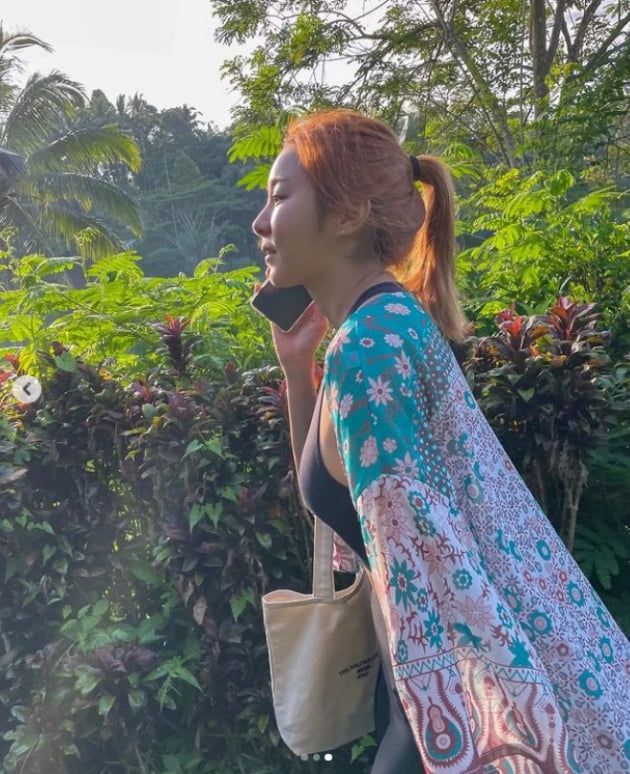 사진 속 유이는 크롭티에 반바지를 입고 여유롭게 여행을 즐기고 있다.