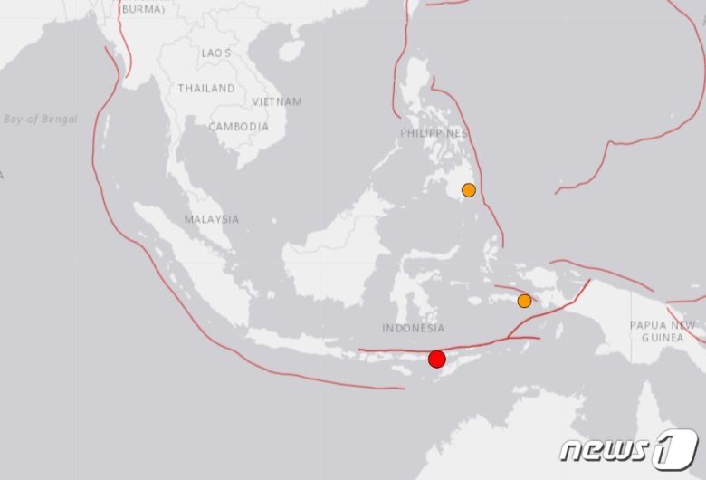(서울=뉴스1) 김예슬 기자 = 인도네시아 플로레스섬 북부 마우메레 인근에서 23일(현지시간) 04시23분(한국시간 06시23분) 규모 5.1의 지진이 발생했다.