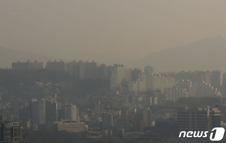 서울 도심 초미세먼지 농도가 나쁨 수준을 보인 21일 서울 중구 롯데호텔에서 바라본 도심 일대가 뿌연 모습을 보이고 있다. 2023.3.21/뉴스1 ⓒ News1 송원영 기자 |