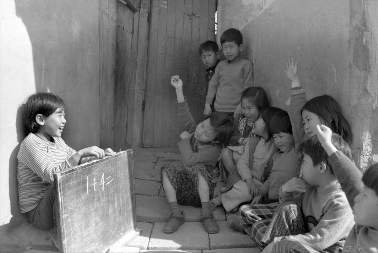 꼬마들이 작은 칠판에 간단한 산수 문제를 적어놓고 퀴즈 풀이를 하고 있다. 요즘 초등학생들이 한다는 ‘선행 학습’이란 단어조차 없던 1974년 서울의 어느 골목안 풍경은 작고한 사진가 김기찬의 사진이다. 답을 안다고 손을 번쩍 든 아이들보다 몰라서 쑥쓰러워하는 아이들이 더 많지만 문제를 낸 아이의 표정은 즐겁다.