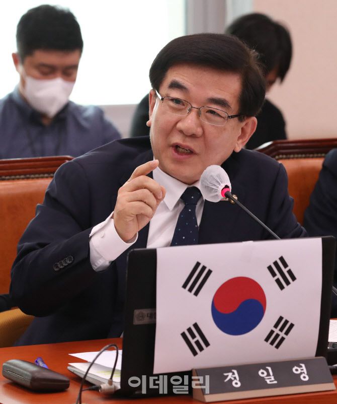 [이데일리 노진환 기자] 정일영 더불어민주당 의원이 23일 서울 여의도 국회에서 열린 산업통상자원위원회 전체회의에서 이창양 산업통상자원부 장관에게 질의하고 있다.