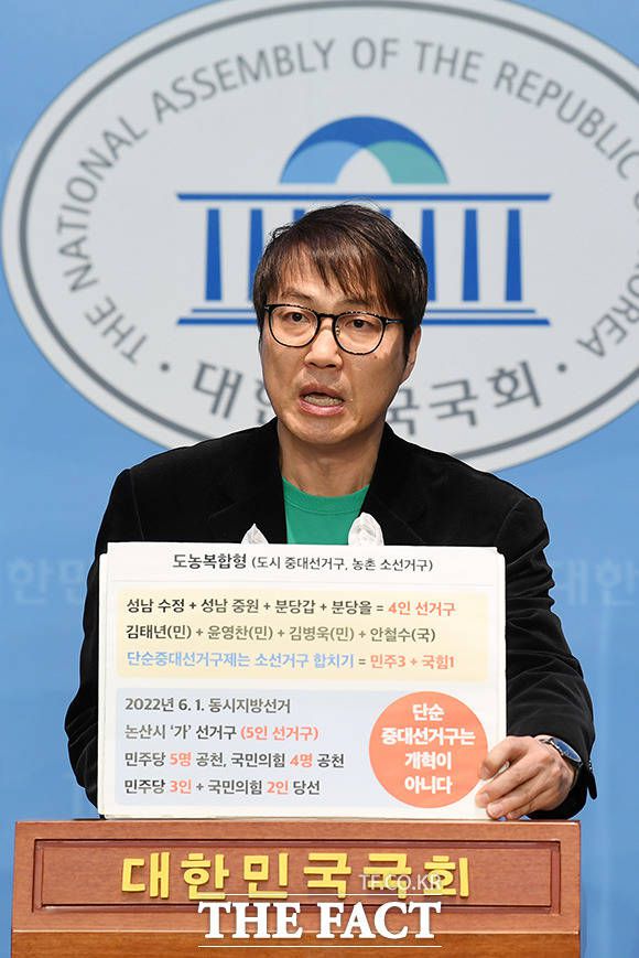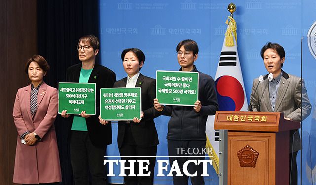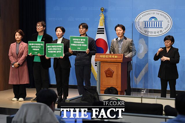 이날 기자회견에서 이탄희 의원과 이은주 정의당 원내대표, 김찬휘 녹색당 대표 등 관계자들은 "국민의힘 지도부가 국회의원 수를 절대로 늘리지 않겠다고 했다. 오히려 줄이자고도 했다"며 "이러한 이유는 국회의원 수가 적을수록 국회의원의 기득권이 강해지기 때문"이라고 말했다.