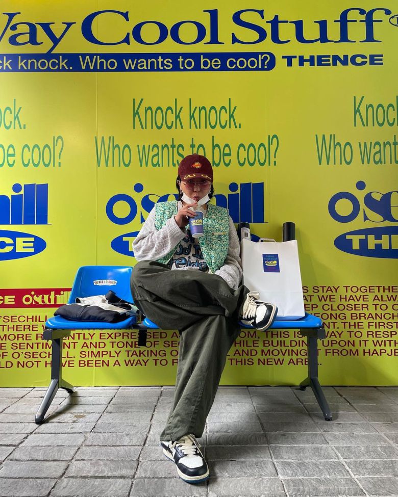 이날 공개된 사진 속 송민호는 평범한 일상을 보내고 있는 모습이다. 쇼핑을 하고 벤치에서 음료를 마시거나 벽에 기린 그림을 그리며 여유를 즐겼다.