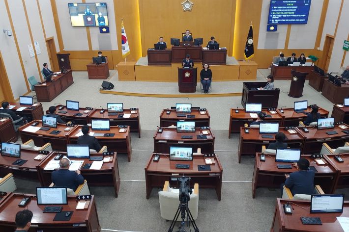 시의회 민주당 의원들은 이날 성명을 통해 "의원의 정당한 의견표명을 무시하고 지방자치 정신을 훼손.말산하는 횡포"라고 반발했다.