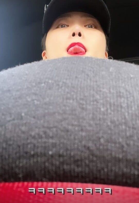 이어 허니제이는 "빨간 띠의 정체는 안전벨트지요"라며 독특한 구도샷이 이동 중인 차량 안에서 촬영한 것이라고 밝혔다.
