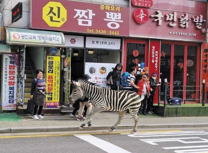 23일 오후 서울 광진구 어린이대공원에서 탈출한 얼룩말이 한 상가 거리 앞을 달려가고 있다. /인터넷 커뮤니티 |