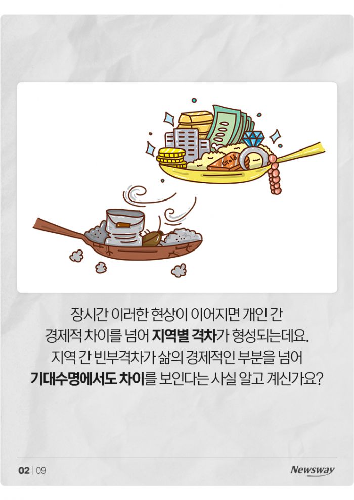 장시간 이러한 현상이 이어지면 개인 간 경제적 차이를 넘어 지역별 격차가 형성되는데요. 지역 간 빈부격차가 삶의 경제적인 부분을 넘어 기대수명에서도 차이를 보인다는 사실 알고 계신가요?