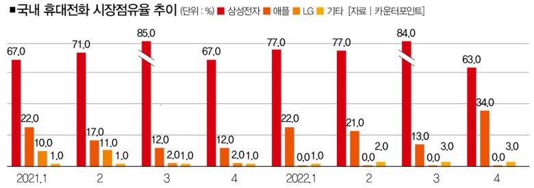그럼에도 애플페이가 '○○페이'로 불리는 간편결제 시장에 불러일으킬 파장은 적지 않을 전망이다. 그 배경은 아이폰 시장점유율이다. 지난해 3분기 13.0%였던 아이폰의 시장점유율은 아이폰14 흥행에 힘입어 4분기 34.0%로 상승했다. 이렇게 강해진 아이폰의 힘은 애플페이에게 긍정적인 효과를 줄 수 있다. 휴대전화를 교체할 때 삼성전자가 아닌 애플을 선택할 수 있다는 이유에서다.