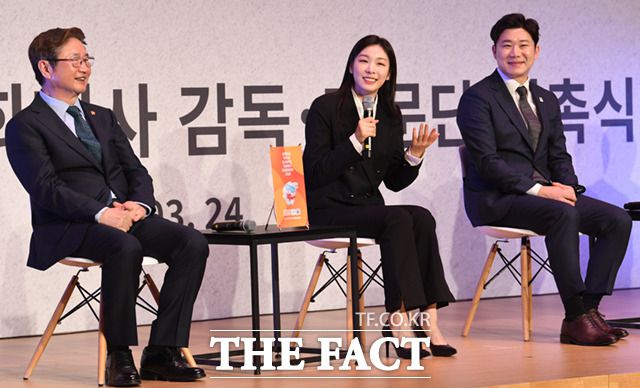 [더팩트ㅣ이새롬 기자] 피겨 국가대표 출신 김연아가 24일 오후 서울 송파구 올림픽파크텔에서 열린 '강원2024 동계청소년올림픽대회 홍보대사 및 문화행사 감독·자문단 위촉식' 에 참석해 인터뷰를 하고 있다.