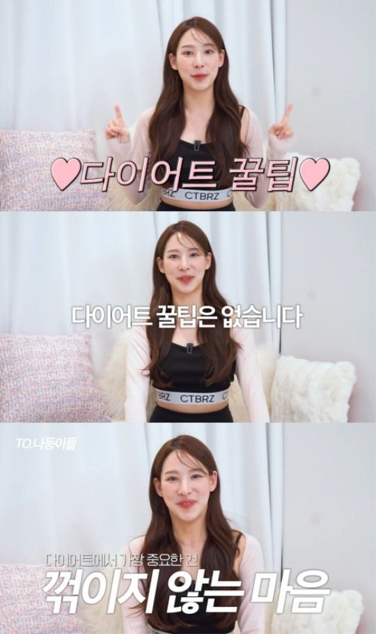 영상 속 이나연은 "오늘은 다이어트 꿀팁 관련 영상이다. 그런데 다이어트는 꿀팁은 없다"며 "저는 다이어트를 잘 하고 살을 빼게 해주는 꿀팁 보다는 제가 어떻게 해왔고, 어떻게 유지를 했고, 어떻게 하면 다이어트를 오래 할 수 있는지 마음가짐에 대한 이야기를 해보려고 한다"고 말문을 열었다.