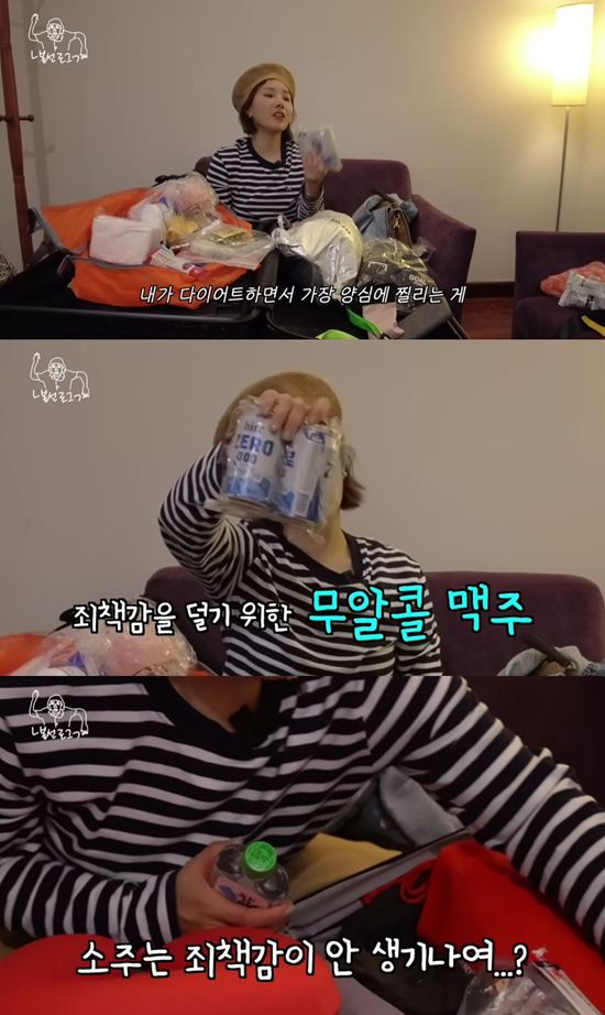 또 신봉선은 "내가 다이어트하면서 가장 양심에 찔리는 게 뭔지 알아?"라는 말과 함께 맥주를 꺼냈다. 그는 "이건 무알콜 맥주다. 아무도 줄 수 없다"고 했다.