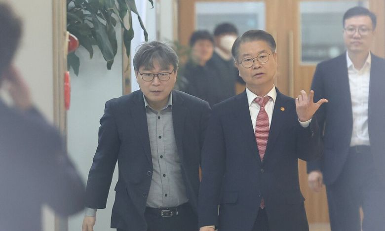 이정식 고용노동부 장관이 24일 오전 서울 중구 서울고용노동청에서 15∼39세 청년 노동자로 구성된 노동조합 ‘청년유니온’과 간담회를 하기 위해 참석하고 있다. 이날 간담회는 비공개로 진행됐다. 연합뉴스 |