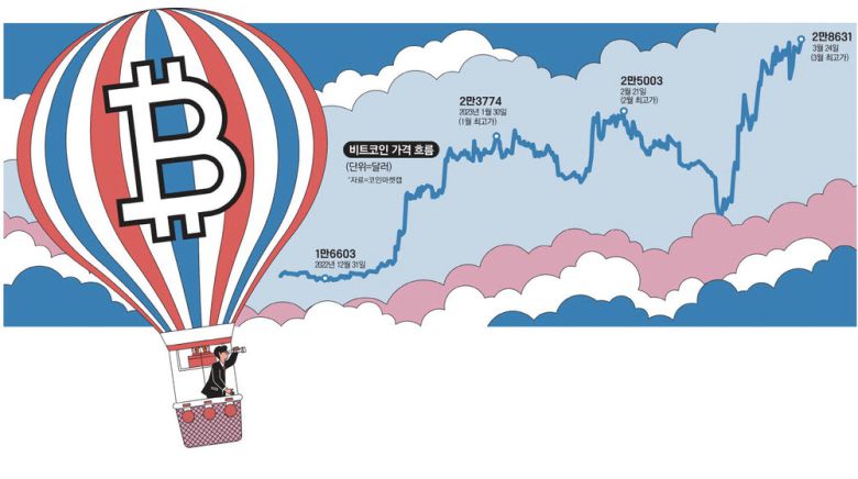 3월 들어서도 비트코인 상승세는 꺾이지 않고 있다. 비트코인은 지난해 테라 몰락, FTX 파산이라는 대형 사고로 1만6000달러에 거래를 마쳤으나 올해 들어서는 매달 두 자릿수 상승폭을 유지하고 있다.