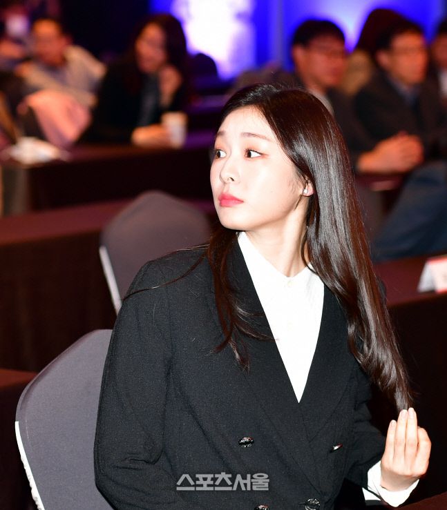 홍보대사 김연아가 24일 올림픽파크텔에서 열린 2024강원 동계청소년올림픽대회(조직원원장 이상화, 진종오) 홍보대사 및 문화행사 감독 자문단 위촉식에서 취재진에 시선을 옮기고 있다. 2023.03.24.
