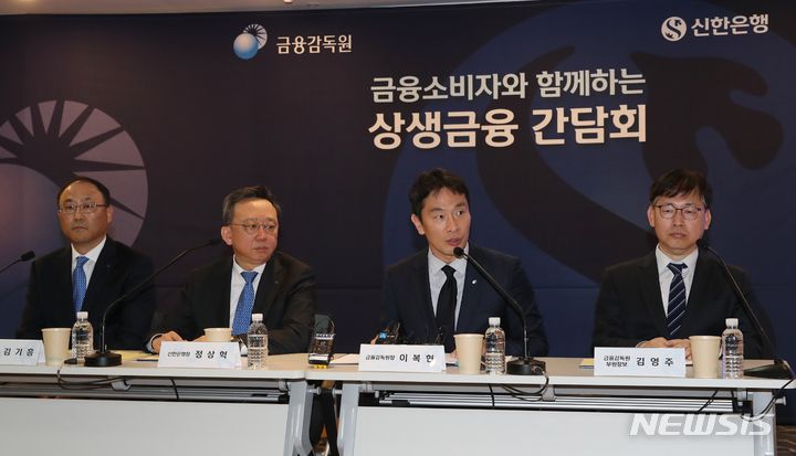 이날 간담회에서는 금감원장과 신한은행장을 비롯해 소상공인, 가계대출 차주 등이 참석했다. 고금리로 인한 금융부담 등 소비자의 애로사항을 직접 청취하고 이자 부담 완화 방안을 논의했다.