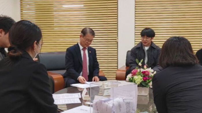 청년 노조 청년유니온과 이정식 고용부 장관의 간담회가 시작되기 30분 전, 갑자기 청년 노조가 기자회견을 열었습니다.