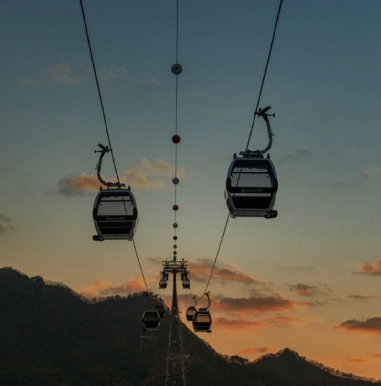 강원 춘천 삼악산 케이블카 모습. 이 케이블카를 운영하는 대명소노그룹 소노인터내셔널은 반려견 동반탑승 전용 캐빈을 만들었다. [춘천시 제공] |