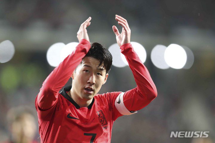 [울산=뉴시스] 김근수 기자 = 24일 오후 울산 남구 문수축구경기장에서 열린 하나은행 초청 축구 국가대표 평가전 대한민국과 콜롬비아의 경기, 대한민국 손흥민이 관중들에게 박수를 치고 있다. 2023.03.24. ks@newsis.com |