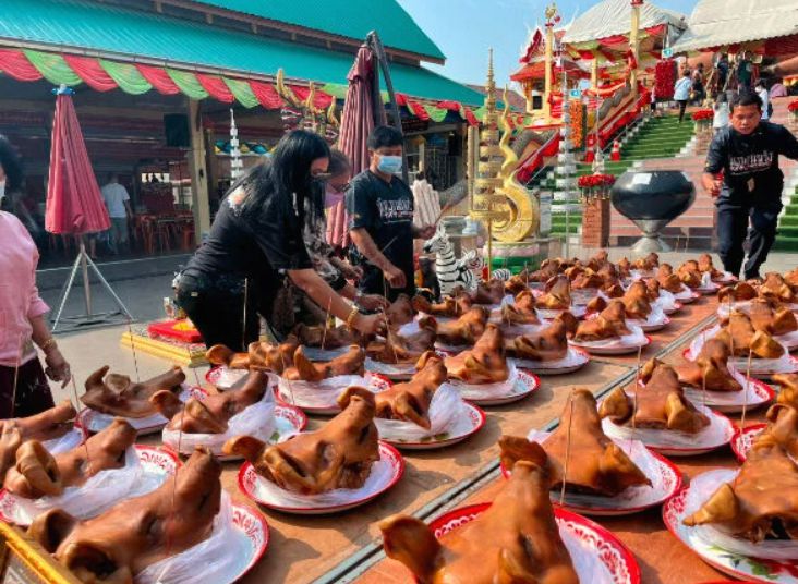 로또에 당첨된 태국 남성이 부처님께 감사의 의미로 돼지머리 100개를 바쳤다 |